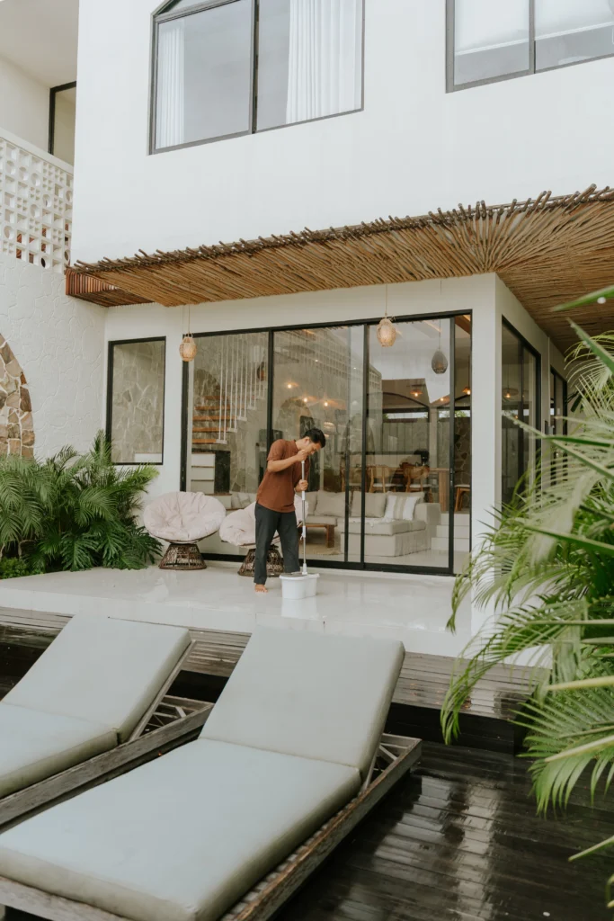 Professional interior cleaning services for villas and hospitality properties, ensuring cleanliness and guest comfort.